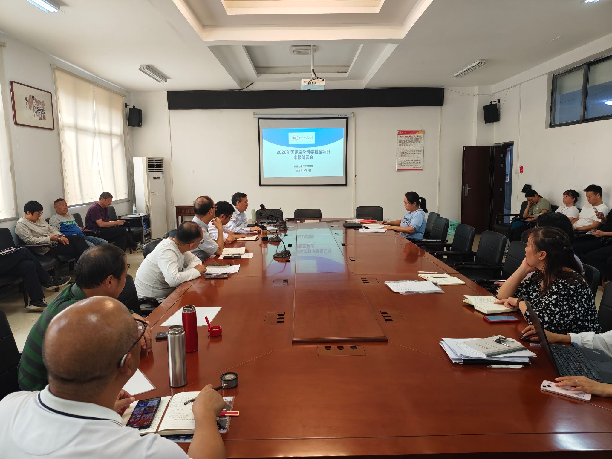 为提高公司2026年国家自然科学基金项目申报数量和质量,提升项目资助率,促进学校科研水平的整体提升。10月17日下午,学院在8322会议室组织召开2026年国家自然科学基金项目申报部署会,会议由公司党委书记郑继明主持,全院教师参会。