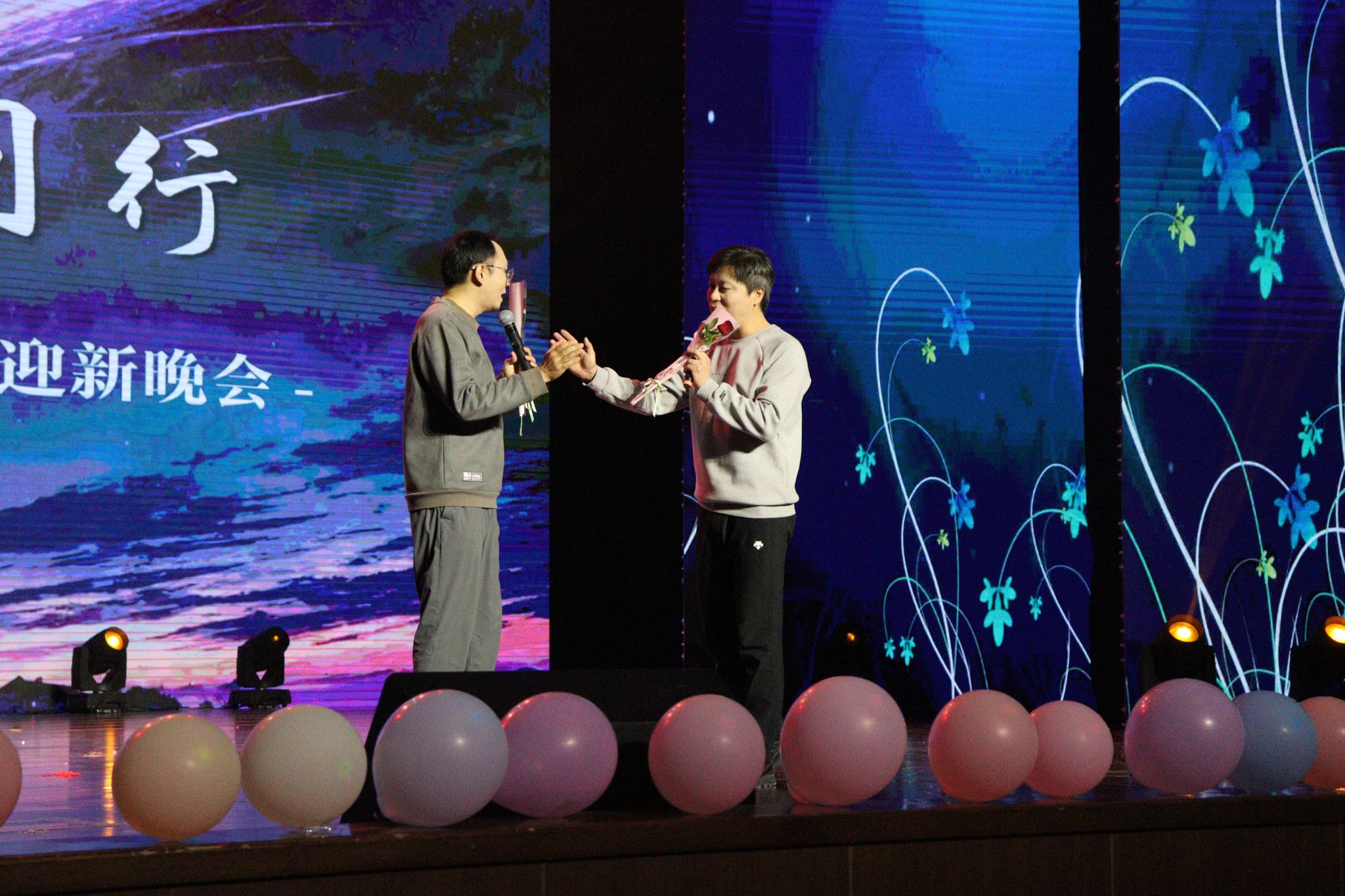 此篇章在董昌同学带来的钢琴演奏《晴天》中展开,灵动的舞蹈《我们的旋律》惊艳全场,将机电人的活力与创意融入律动之中。双人合唱的《老男孩》与《Always Online》唱出了同窗间的深厚情谊,而员工党建工作中心同学的集体合唱《有我》,则用铿锵有力的歌声许下青春的担当誓言。小品《再见老张》用真挚表演触动人心,令全场为之动容。最后,由令狐金卿、伍卫老师演唱的《奔跑》将现场气氛点燃,台下欢呼与掌声交织,师生情谊与同窗羁绊在互动中愈发浓厚。互动环节《瞎子摸东西》趣味游戏中默契的配合与意外的笑料,更是将现场氛围推向又一个高潮。