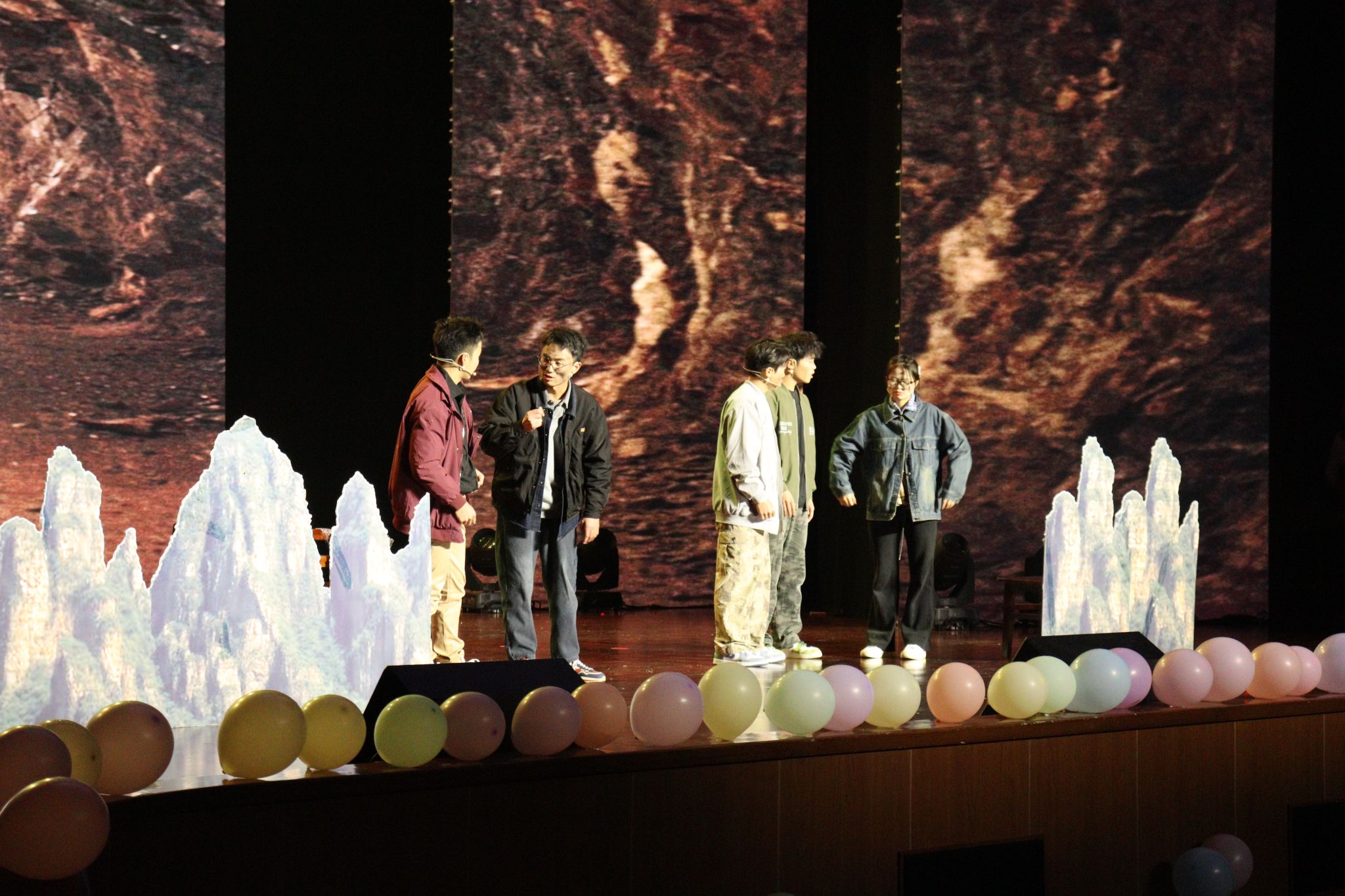 “共闪耀”篇章在深沉动人的钢琴曲《祖国不会忘记》中升华,向默默奉献者致敬。黄文彪、王亚、陈新宇和黄志羽四位同学深情朗诵《美丽中国》,抒发了学子们的家国情怀。机械、电气专业联合团队带来的合唱《相亲相爱》,唱出了学院大家庭的温暖与团结。由伍卫、金洁、刘乾义、令狐金卿老师带来的《歌曲串烧》节目将晚会推向高潮,熟悉的旋律承载着我们共同的记忆,凝聚着强大的集体向心力。晚会在全场师生激昂齐唱《我和我的祖国》中圆满落下帷幕,歌声响彻礼堂,汇成一片情感的海洋。