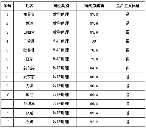 人生就是博ag(中国区)·公司官网2025年招聘科研助理、教学助理面试成绩及进入体检名单公示