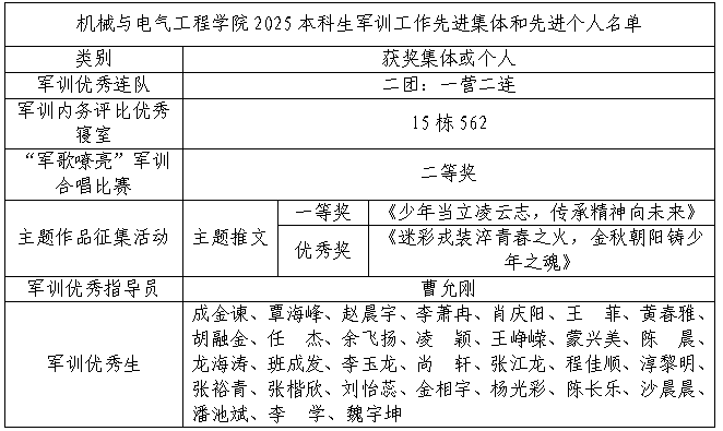 在2025级本科生军训工作中,人生就是博ag(中国区)·公司官网全体参训师生秉持坚韧不拔的意志、团结协作的精神,积极参与各项训练与竞赛活动,凭借出色表现斩获多项集体与个人荣誉,充分展现了学院学子的青春风采与优良风貌,现将获奖情况通报如下: