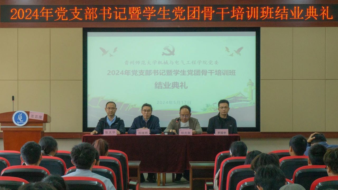 5月17日,学院2024年党支部书记暨员工党团骨干培训班结业典礼在8403报告厅举行,公司党委书记郑继明、副经理张太华、党委委员罗国宇出席,师生党支部委员会成员、员工党建工作中心、团学青、员工宣传工作中心、心理辅导站主要员工干部,各班班长、团支部书记等员工党团骨干参加,公司党委副书记杨光复主持典礼。