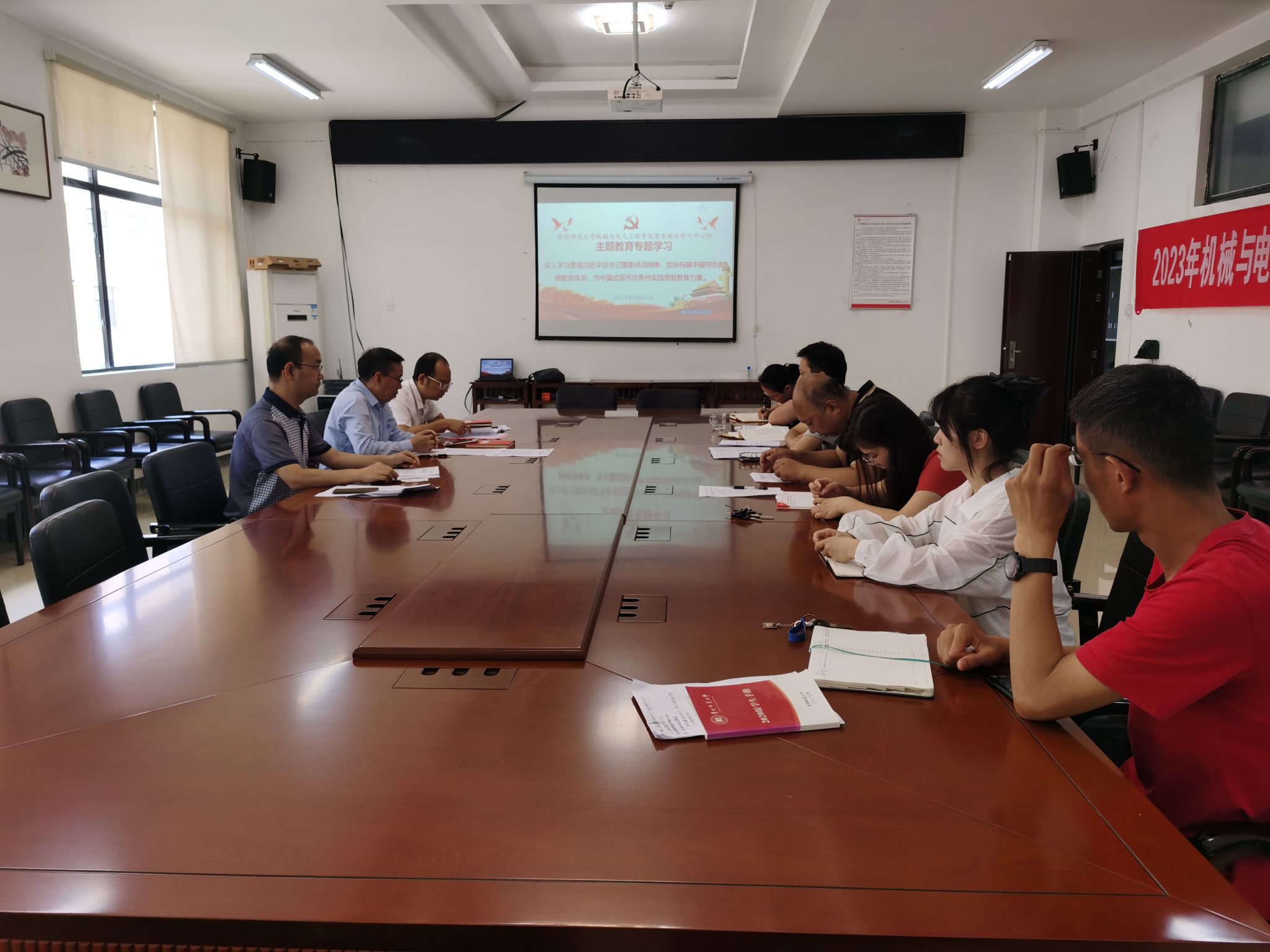 6月27日,公司党委理论学习中心组在学院会议室举行(扩大)专题学习。本次学习主题为:深入学习贯彻习近平总书记重要讲话精神,加快构建中国特色教师教育体系,为中国式现代化贵州实践贡献教育力量。公司党委班子成员、师生党支部书记参加学习,党委书记郑继明主持并讲话。