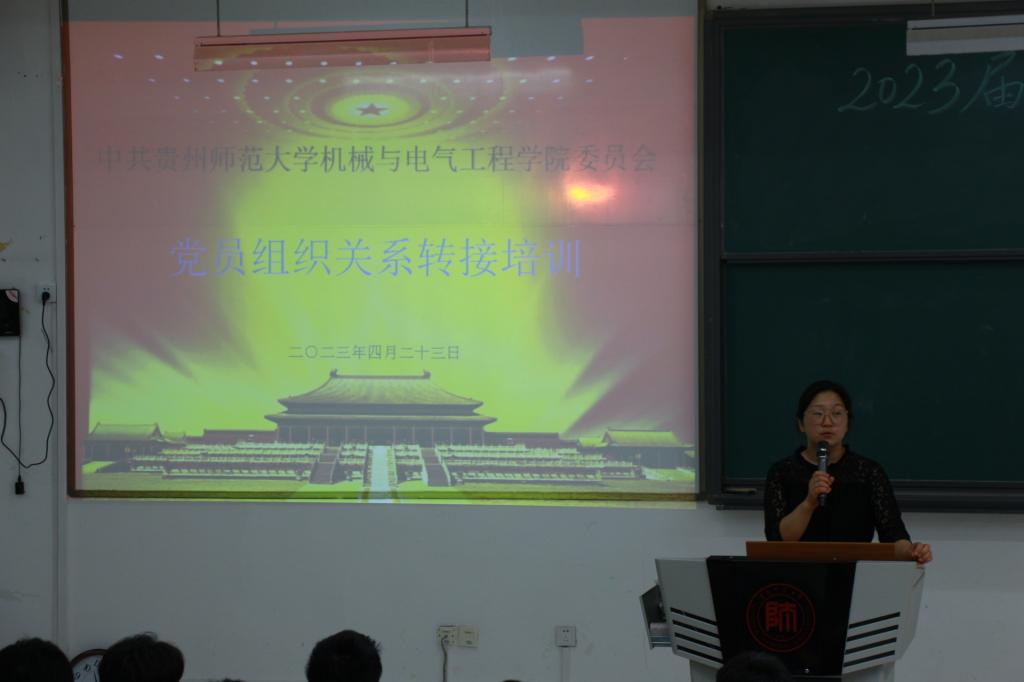 组织员邢丹花就毕业生党员组织关系转接工作作专题培训,围绕毕业生组织关系转接的重要性、转接过程特别是线上组织关系转接过程中经常遇到的问题进行了详细介绍,并对2023届毕业生党员组织关系转接工作的时间安排作了说明。强调党员组织关系转接对于强化党员队伍建设、严密党的组织建设等都具有重要意义,希望毕业生党员们高度重视,积极配合在规定的时间之内完成组织关系转接工作。