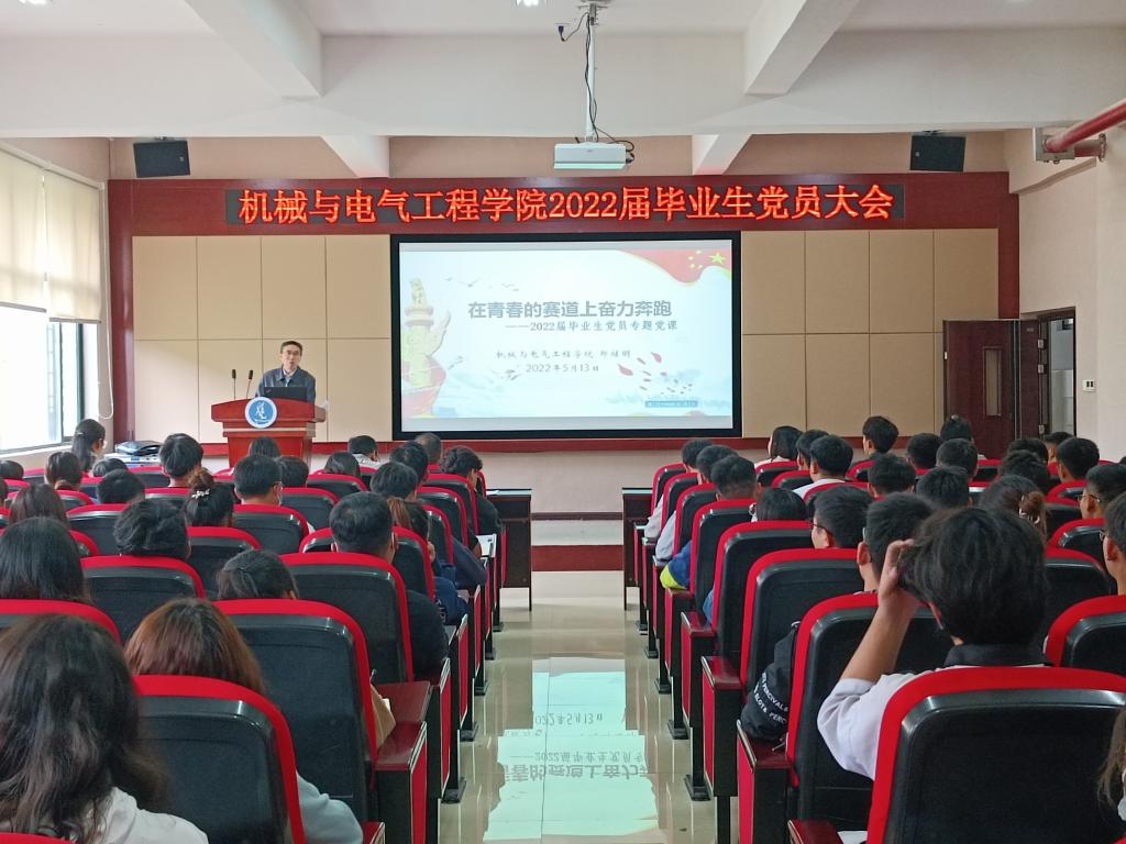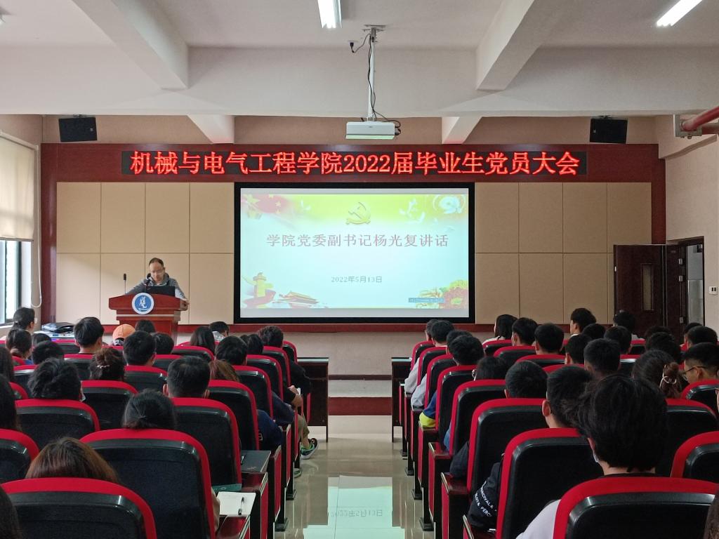 为进一步落实毕业生党员的教育和管理工作,加强毕业生党员离校前的党性教育,确保毕业生党员起到先锋模范作用,帮助党员顺利转接党组织关系。5月13日,人生就是博ag(中国区)·公司官网在8403报告厅召开2022届毕业生党员大会,公司党委书记郑继明、党委副书记杨光复出席,2022届毕业班辅导员柳楠和全体毕业生党员参加,组织员邢丹花主持会议。