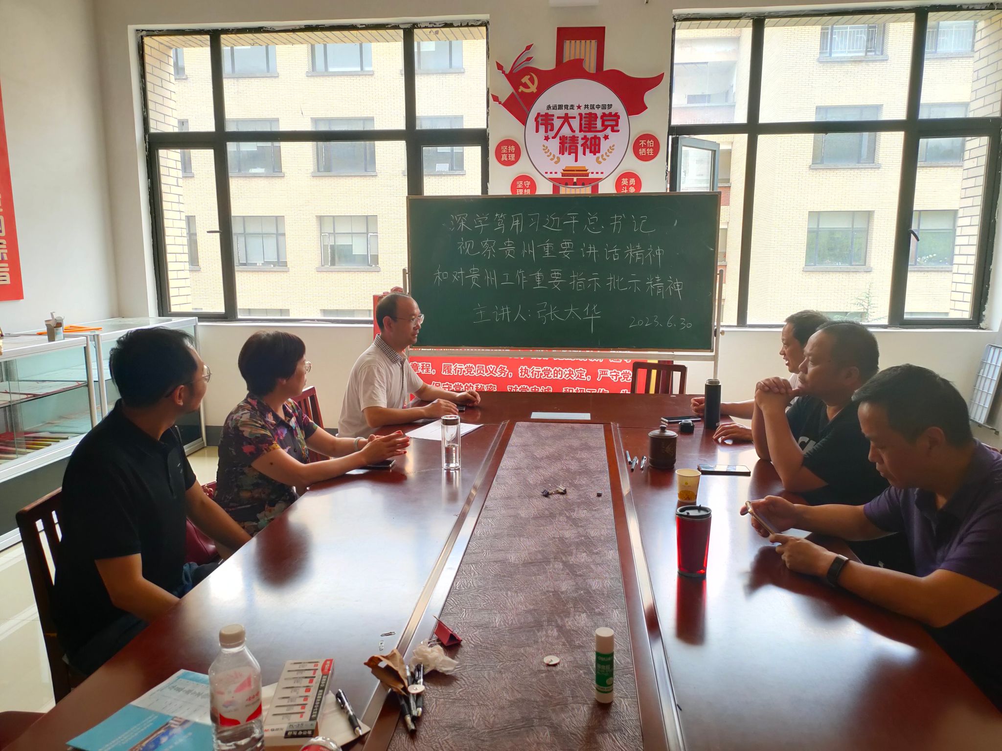 按照学习贯彻习近平新时代中国特色社会主义思想主题教育的相关要求,6月30日下午,公司党委委员、副经理张太华以“深学笃用习近平总书记视察贵州重要讲话精神和对贵州工作重要指示批示精神”为题,在学院8328党员活动室为联系指导的电气工程系党支部全体党员讲授主题教育专题党课。