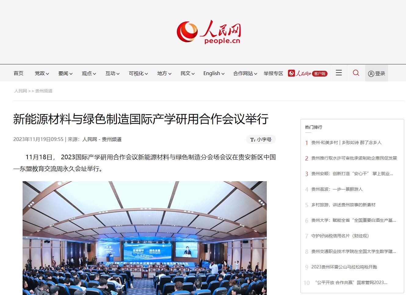 【人民网】新能源材料与绿色制造国际产学研用合作会议举行