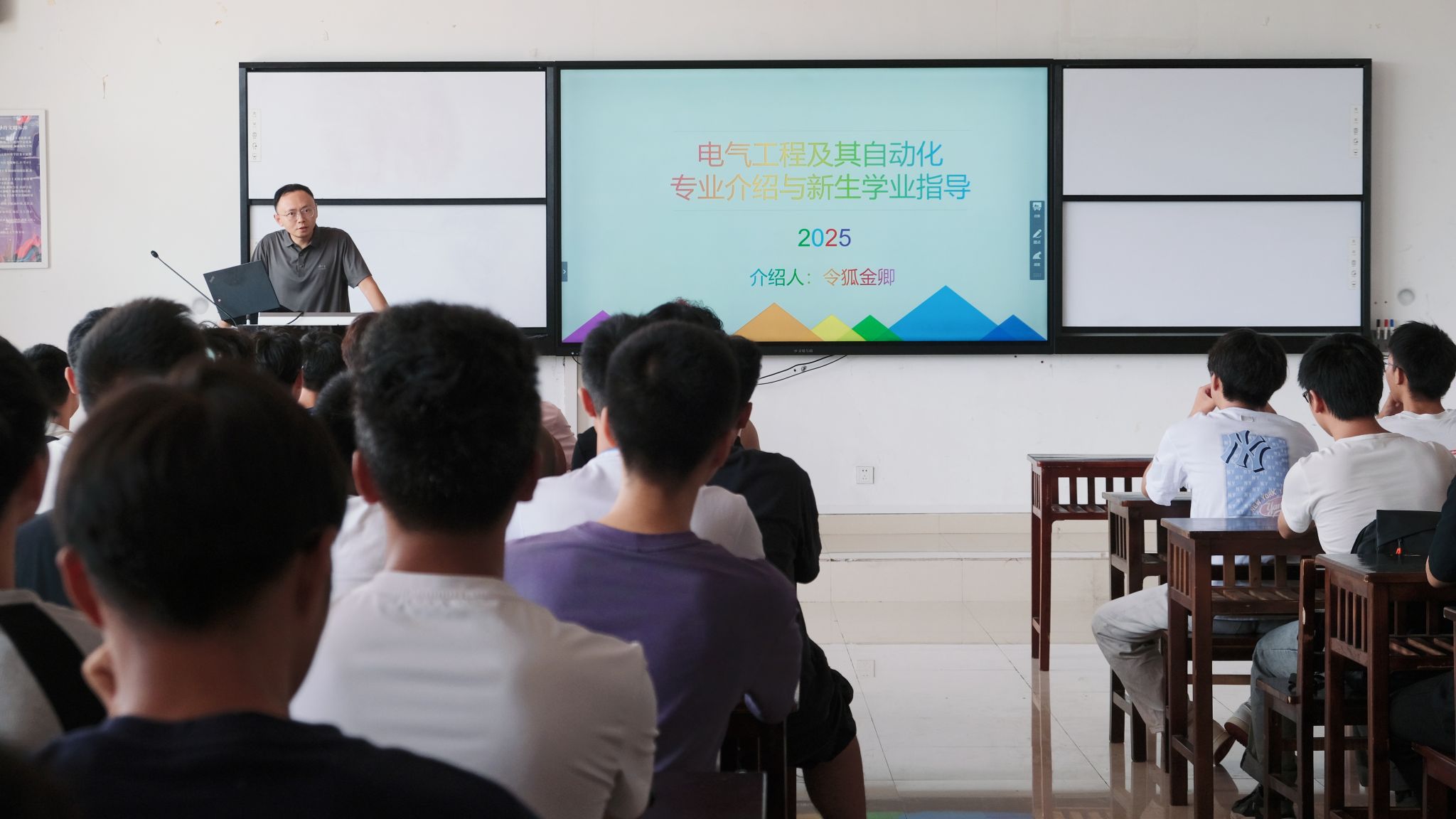 令狐金卿为电气工程及其自动化专业新生授课,他以通俗语言介绍该专业以电力系统运行、电气控制为核心,涉及工业自动化、新能源技术等应用方向。关于未来发展,他明确表示,该专业就业范围覆盖面广,无论是能源领域,还是电气设备制造、智能楼宇控制等行业,都能为毕业生提供丰富岗位,职业发展空间广阔。