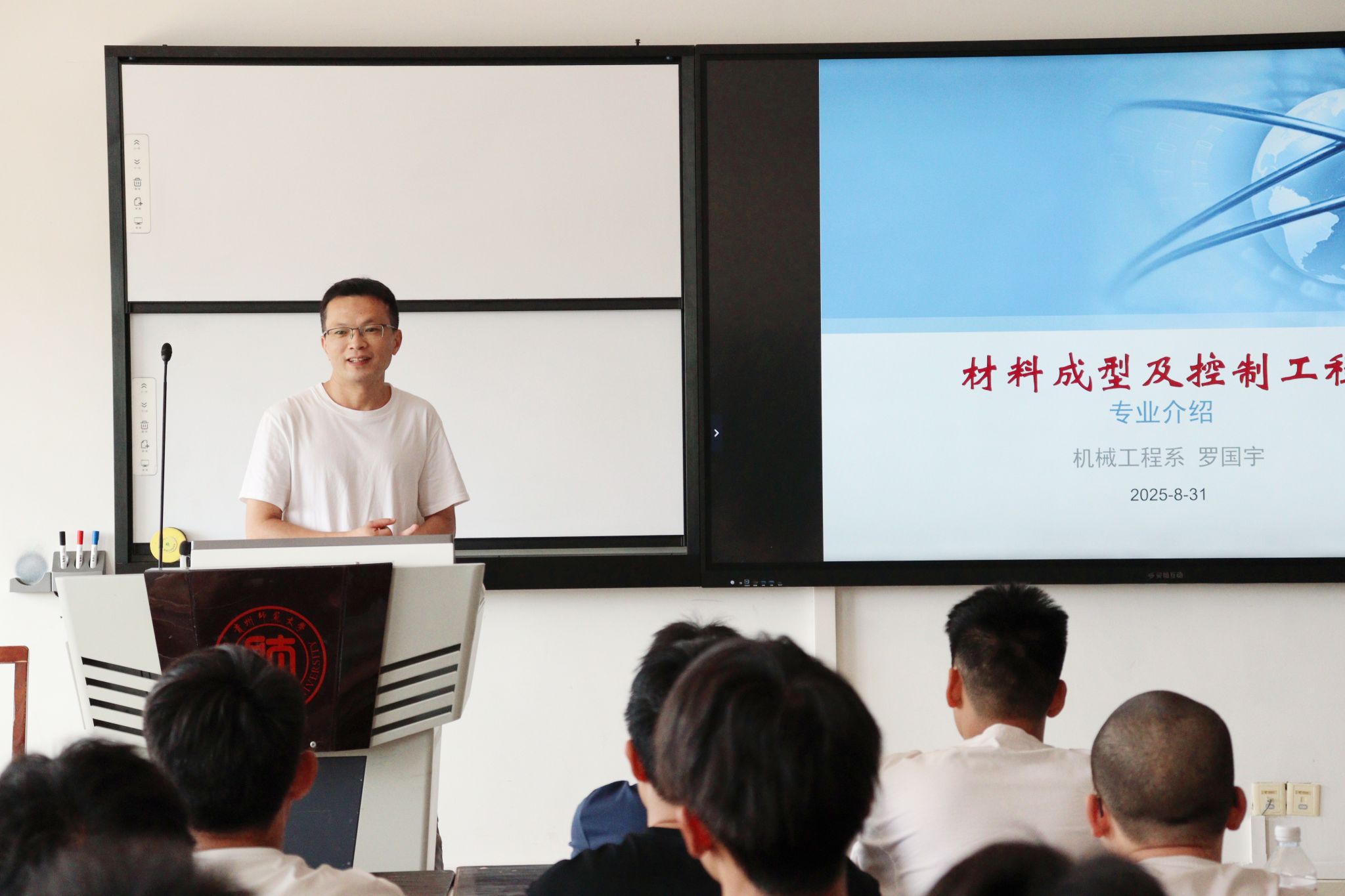 罗国宇为材料成型控制工程专业新生授课时,简要介绍该专业以材料加工成型及过程控制为核心,涵盖铸造、焊接等关键技术领域。他重点强调,该专业就业范围广阔,毕业生既能入职汽车、航空航天等高端制造企业,也可服务于模具研发、建材生产等行业,就业选择十分多样。