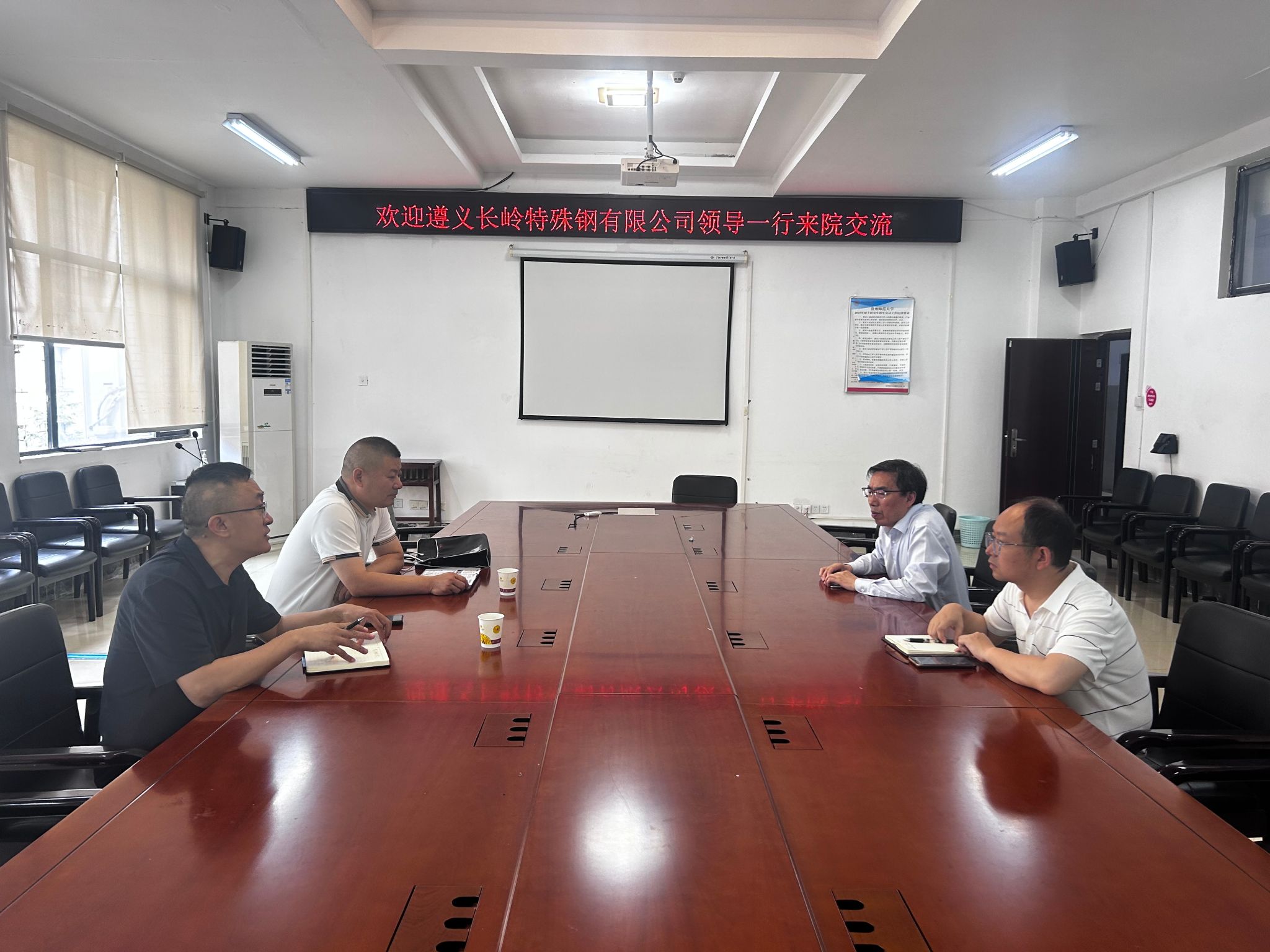 校企双方在学院8322会议室就校企合作、产教融合及企业招聘需求等议题展开座谈。遵义长岭特殊钢有限公司人力资源部部长张善江、生产指挥中心主任姜明刚,公司党委书记郑继明、副书记杨光复参加会议。座谈会上,双方就未来在人才培养、实习基地建设、科研项目合作等方面进行了深入探讨。期待以此次交流为契机,进一步加强校企联动,实现互利共赢。
